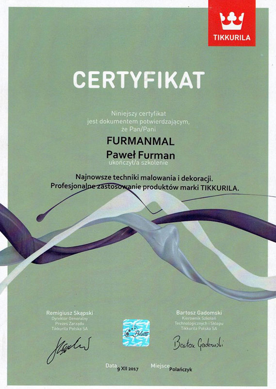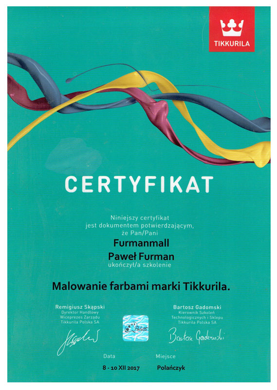 Najczęściej stosujemy farby Tikkurila Makor-Tix, grunto-emalia akrylowa spełniająca funkcje antykorozyjnej farby gruntującej i tiksotropowej emalii nawierzchniowej (2 w 1). Tworzy trwałe, matowe powłoki o wysokiej sile krycia, bardzo dobrych właściwościach mechanicznych i doskonałej odporności na działanie czynników atmosferycznych.